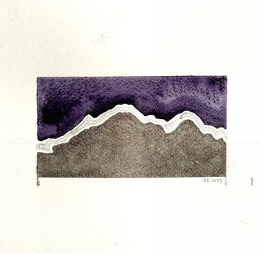 Indigenous languages refer to the tallest mountain in North America differently, including as what translates to ‘the tall one.’ A trip to Alaska recently allowed me to learn about Denali, another name inspired by Indigenous language. This piece upcycles paint leftover from other work giving it a multi-metal look.