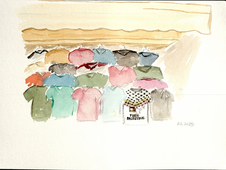While walking through a souk in Fes, Morocco, I came across this display of soccer/football jerseys.